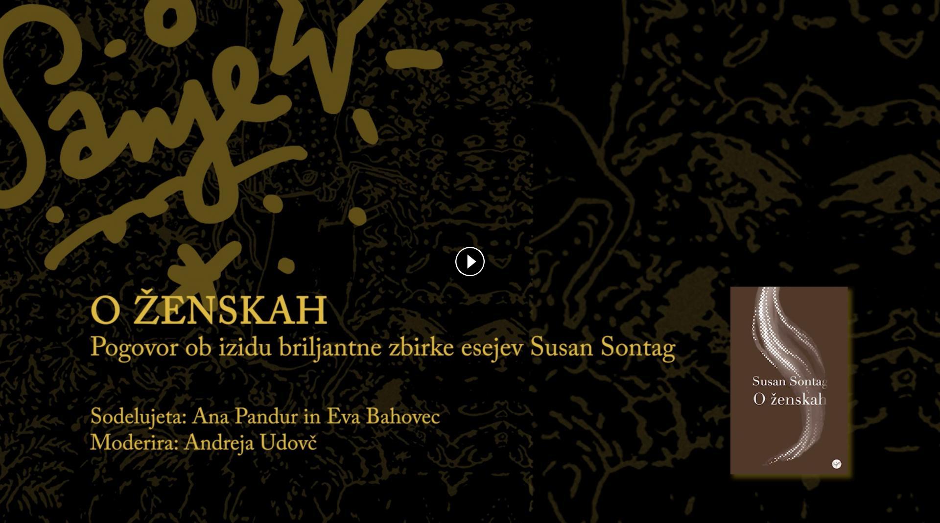 Esejistično delo Susan Sontag O ženskah je uvod v pisanje ena najimpresivnejših, najizvirnejših in najvplivnejših filozofinj 20. stoletja, »feministke, ki to sploh ni bila«. V njem se kultna mislecinja 20. stoletja loteva tematike staranja, enakosti, lepote, spolnosti in fašizma. O kultni mislecinji in njenem pisanju na temo ženskih vprašanj sta na knjižnem sejmu spregovorili plesalka in filozofinja Ana Pandur, ki je delo odlično prevedla v slovenščino, ter filozofinja in profesorica ženskih študij na Oddelku za filozofijo FF UL Eva Bahovec. Pogovor je povezala urednica na založbi Sanje Andreja Udovč.