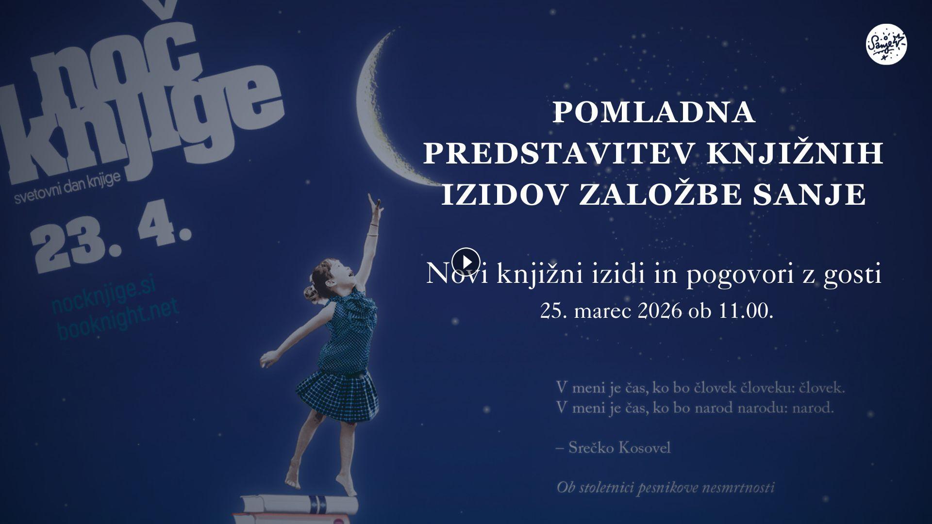Povabili smo k soustvarjanju NOČI KNJIGE 2026, ki jo letos posvečamo praznovanju stoletnice Kosovelove nesmrtnosti. PRIJAVNICA DOGODKOV je odprta, najlepše vabljeni k soustvarjanju! Vsem, ki boste prijavili dogodek, bomo podarili prelepo novo edicijo faksimila Kosovelovih Pesmi iz leta 1927. Več na spletni strani nocknjige.si.